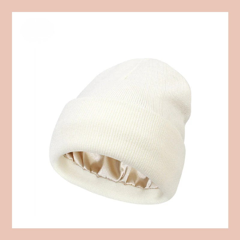 Till skillnad från vanliga stickade mössor har Velmira ett silkeslent satinfoder på insidan som skyddar håret mot friss, statisk elektricitet och “mössfrisyr”. Den kombinerar värme, komfort och stil – i en och samma design.